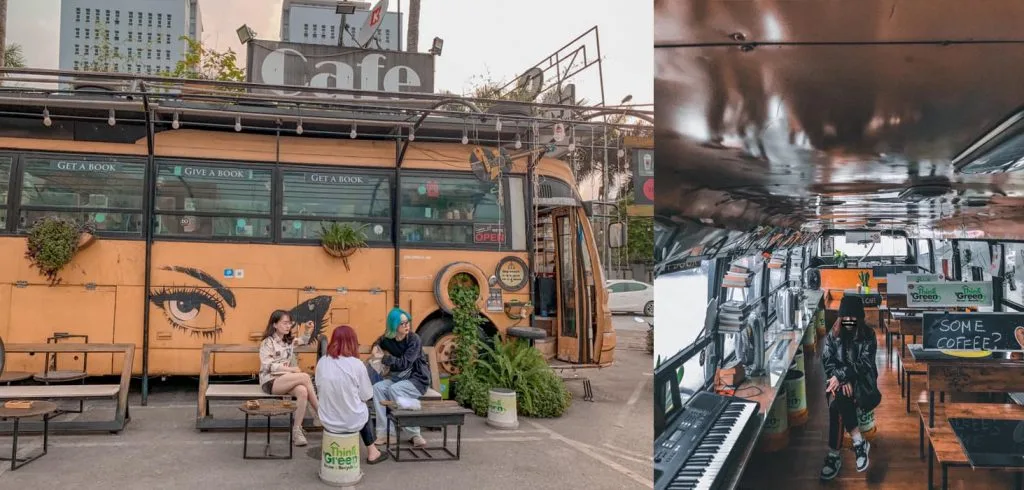 세기말 영화에서 본 풍경이다. 오래되어 달릴 수 없는 버스가 있고, 그것을 사람들이 생활공간으로 쓰는 풍경 말이다. 하노이에 있는 버스카페는 오래된 버스를 개조하여 만든 독특한 콘셉트의 카페다.