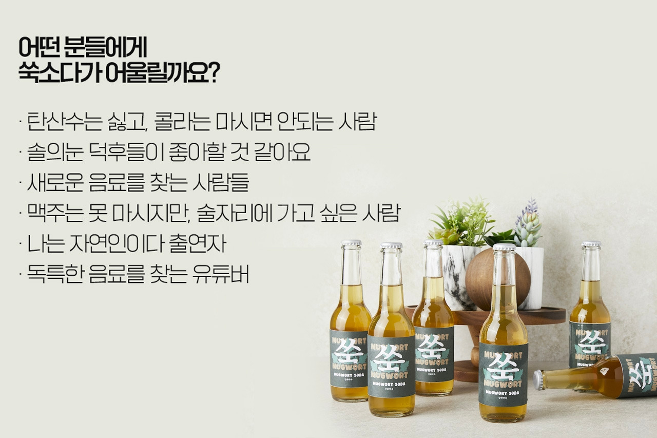 '쑥소다'는 어른들을 위한 탄산음료다... 라는 점에서 대부분 의견을 같이 했다. 사람들이 맥주를 마실 때, 술 대신 마시는 게 좋겠다는 의견부터. 마시고 난 후에 부담이 없어 장거리 운전에 어울리겠다는 사람까지. 또 오히려 술을 추가해서 '칵테일용'으로 쑥소다를 쓰고 싶다는 후기도 있었다. 역시 쑥소다처럼 크래프트한 탄산음료는 어른들의 취향을 자극한다.