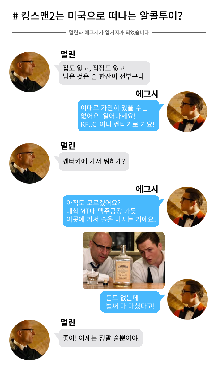 전작이 너무 완벽했기 때문에 아쉬움이 없는 것은 아니었다. 하지만 새로운 재미요소들이 곳곳에 배치되어 있었다. 영화 이야기냐고? 아니 영화 속에 등장하는 음료 이야기다. 오늘은 음주적으로 흥미로운 영화 '킹스맨2'에 등장하는 술 이야기다.