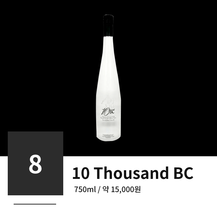 물론 마시기가 쉽지 않다. 텐 사우전드 비씨를 마시기 위해서는 라스베거스 힐튼 호텔 VIP 스위트룸에 묵거나, 캐나다 총리가 되는 수밖에 없다고 한다. 텐 사우전드 비씨는 캐나다 총리의 저녁식사에 함께 나오는 것으로 알려졌으니까.