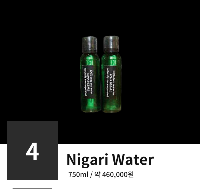 코나 니가리 워터는 일본인들에게 인기라고 소개가 되었다. 하지만 소문과 가격만 떠도는 얼굴 없는 가수 같은 생수로 피부 노화 방지 그리고 체중을 줄여준다고 한다. 잘은 모르지만 내가 마신다면 지갑의 체중은 확실하게 줄어들 것 같다. 정말 확실히.
