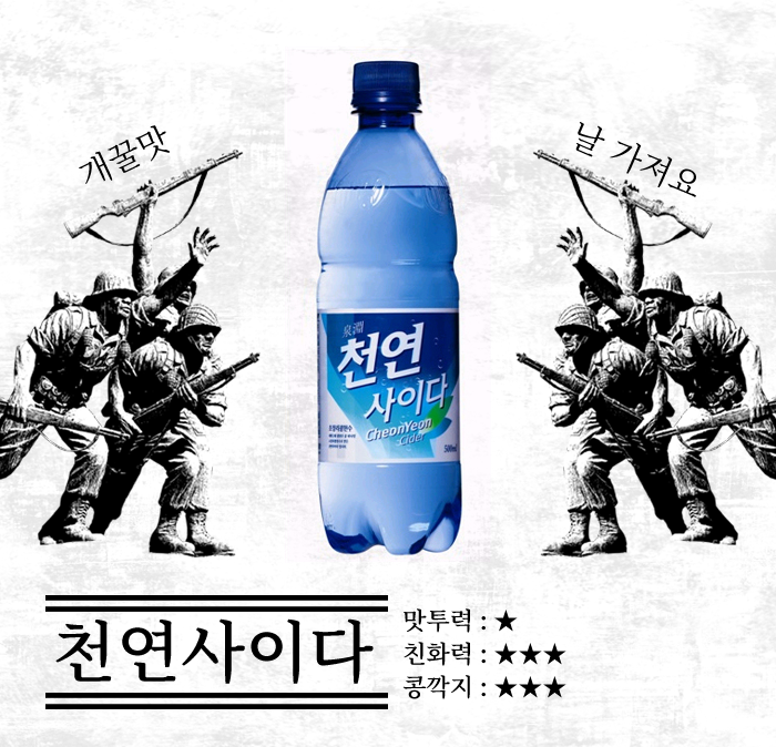 천연사이다는 몇몇 마트에서도 발견할 수 있다. 맛도 변하지 않았고, 가격도 물보다 쌀 정도로 저렴하다. 그런데 손이 안 가는 이유가 무엇일까. 분명 맛있게 마셨지만 마시는 순간 연병장에 갈 것 같은 꿈을 꿀 것 같다.