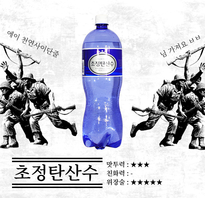 20대 초반이면 탄산수를 모를 나이다. 이건 사이다도 아니고, 물도 아니고, 밍밍한데 뭐가 툭툭 건드리는 느낌이랄까? 결국 천연사이다를 마시지 못한 마음의 상처를 받게 된다. 군당국은 초정탄산수의 위장술이 뛰어난 것인지, 국군장병들의 독해력이 떨어진 것인지 밝혀 더 이상의 비극을 막아야 한다.