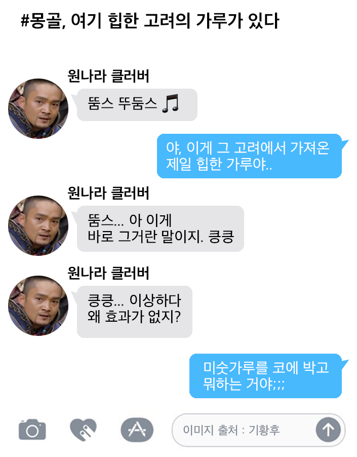 혹은 우리나라에서 전해진 것이 아니냐는 추정도 있다. 13세기 몽골은 고려의 옷과 음식을 따라 하는 '고려양'이 가장 힙했기 때문이다. 심지어 미숫가루와 이름도 비슷하다(물론 당시는 미수, 미식, 미싯이라고 불렀다). 여하튼 그들이 우리에게 소주라는 문화를 전달해줬으므로 쌤쌤이라고 쳤으면 좋겠다.