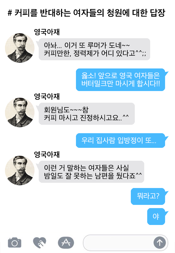 아닙니다. 아마 300년 전을 떠올려야 할 것 같습니다. 영국에서는 커피 한 잔 때문에 세계 최대의 부부싸움이 일어난 적이 있거든요. 트위터만 없었다 뿐이지... 아주 살벌한 썰전이었습니다. 오늘은 그 이야기를 대신 전해드리겠습니다.