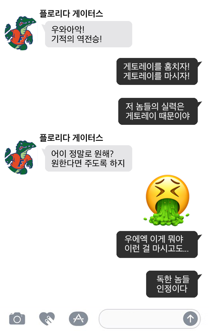 괜찮지 않았다. 플로리다 게이터스 감독은 이 변기... 아니 음료를 마시고 말했다. "1학년 선수들에게 마시게 하는 건 괜찮소. 그런데 우리 대표선수들은 절대 건들지 마!"