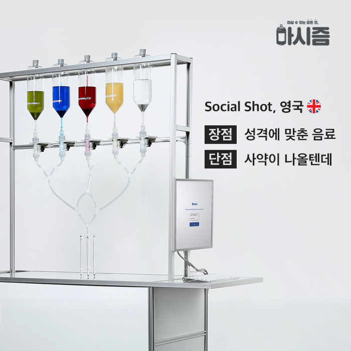 로봇이 음료를 만들어도 신기하기만 할 뿐, 그 이상 특별함까지 가지 않은 것은 '인간스러운 레시피'에 한정되었기 때문이다. 영국 캠브리지 대학의 '소셜샷(Social Shot)'은 오직 로봇만이 만들 수 있는 칵테일을 제공해준다. 자신의 페이스북 아이디를 알려주면, 성격을 분석해서 칵테일을 만드는 것이다.