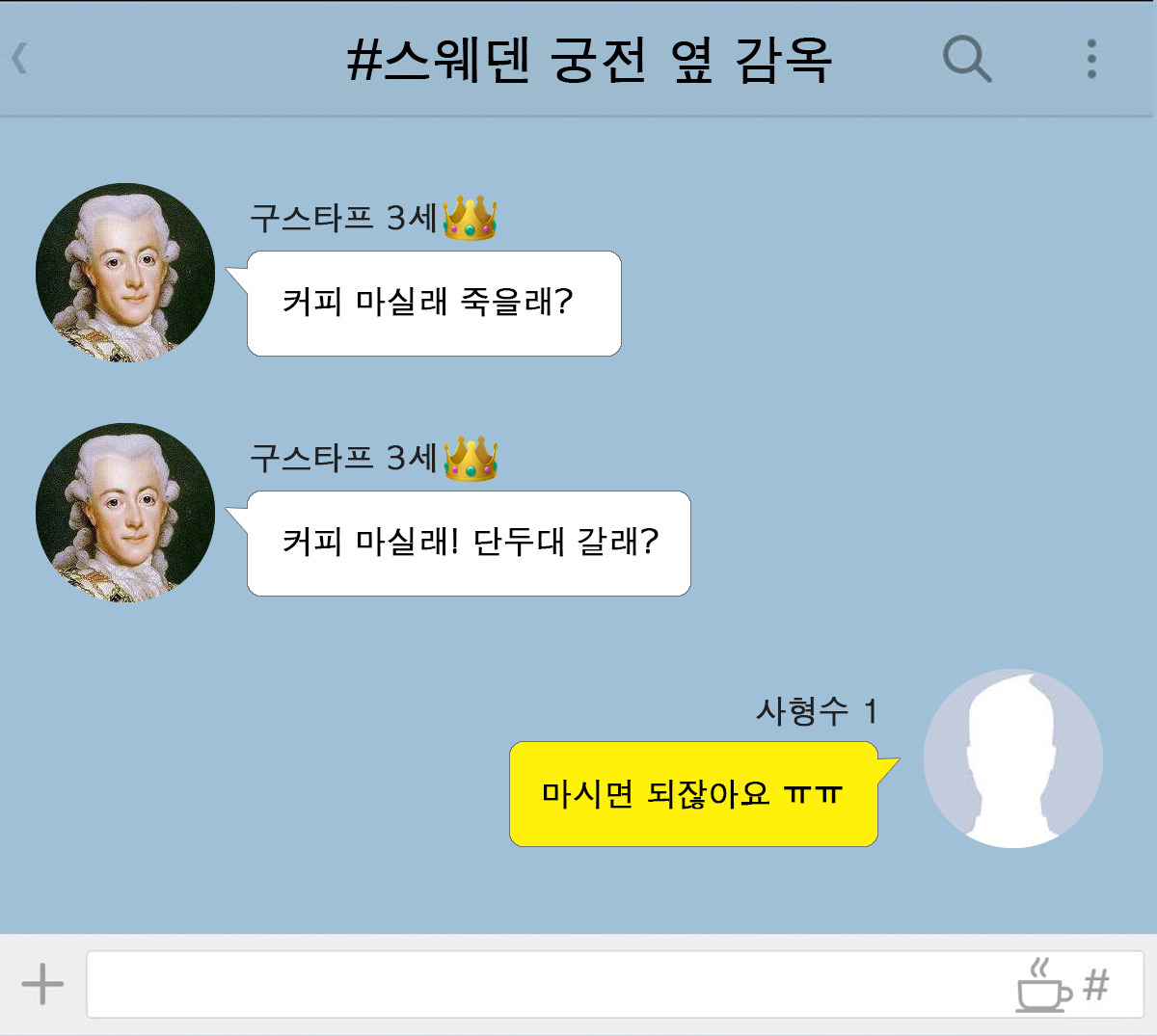 교황의 지지를 등에 업고 커피는 유럽 전역에 알려졌다. 하지만 여전히 커피에 대해 불신하는 이들이 있었다. 18세기 스웨덴 국왕 구스타프 3세는 커피가 인간은 서서히 죽여간다고 믿었다. 커피는 사람의 정신을 강제로 깨우고, 잠을 못 자게 하기 때문이라는데... 아마 그는 카페인을 너무 잘 받는 체질이었다보다.