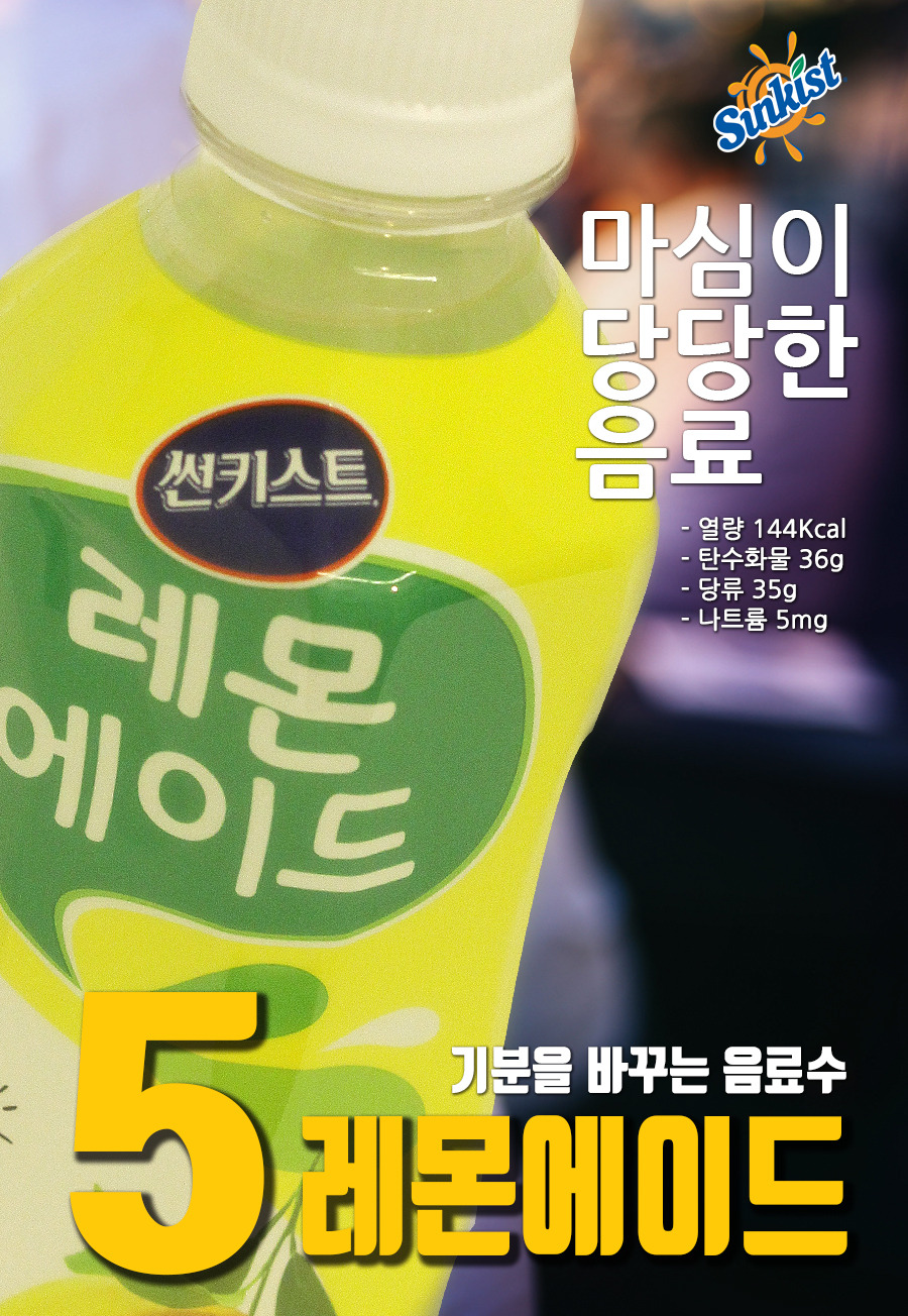 갈증에는 탄산음료를 마셔야 한다는 말은 구시대적 주장이 되었다. 바로 썬키스트 레몬에이드 때문이다. 먼저 젊은감성의 노란 비주얼이 시선을 끈다. 맛을 봤는데 기대 이상. 편의점에 레몬에이드에 이런 상큼함이 담겨있을 줄은 상상도 못했다. 마치 비타민C가 풍부하니 넌 활력이 돋을 것이라고 혀가 외치는 기분이다.