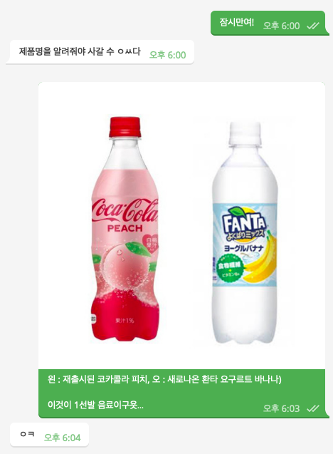 급히 퀵서비스가 하나 더 왔다. 메시지도 와 있었다. "음료를 잘못 보냈다" 퀵서비스로 온 상자에는 코카콜라 피치와 환타 바나나 요구르트가 들어있었다. 그렇다면 스니커즈는? 아들 주려고 산거라고 한다. 돌려달라고 하는데. 이미 둘 다 반절은 마셨으니까. 죄송합니다 선배님. 제가 그냥 아들이 되면 안 될까요?