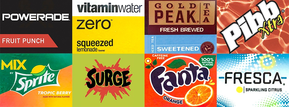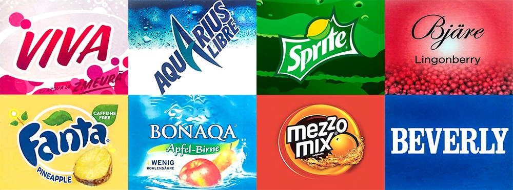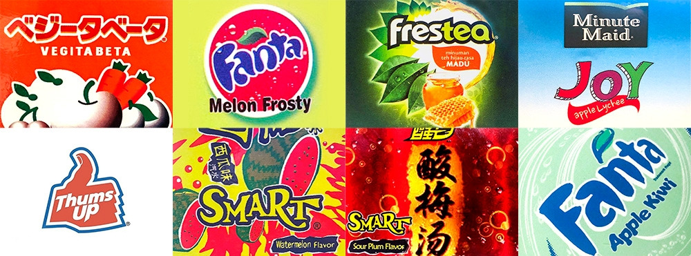 탭(북아메리카), 잉카 콜라(남아메리카), 떰즈업(아시아), 환타 이그조틱(아프리카), 메조 믹스(유럽)
