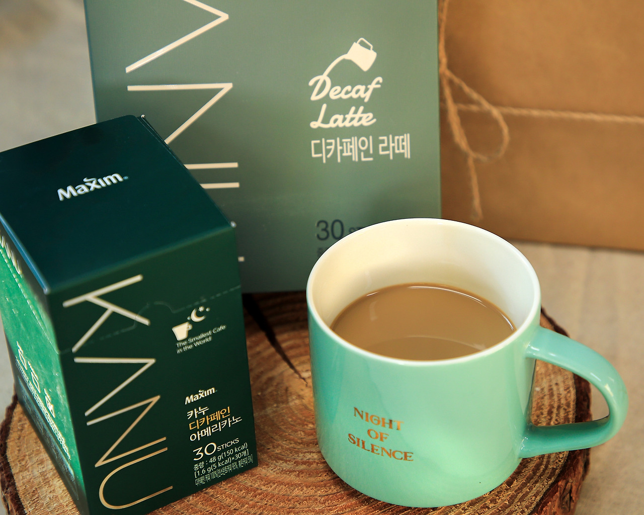 커피 애호가에게 아이를 낳는 것은 어떤 의미일까? 바로 밥보다 많이 먹는 커피를 못 마신다는 선고다. 임신부터 수유기간까지 거의 2년이 넘는 기간 동안 일상의 일부인 커피를 함께하지 못한다니. 다행히 카누세트에 디카페인이 있었다. 물론 초록색 '카누 디카페인 아메리카노'는 이미 가지고 있을 것이다. 왕년의 커피 덕후가 없을 리가 없지. 하지만 라떼는 어떨까?