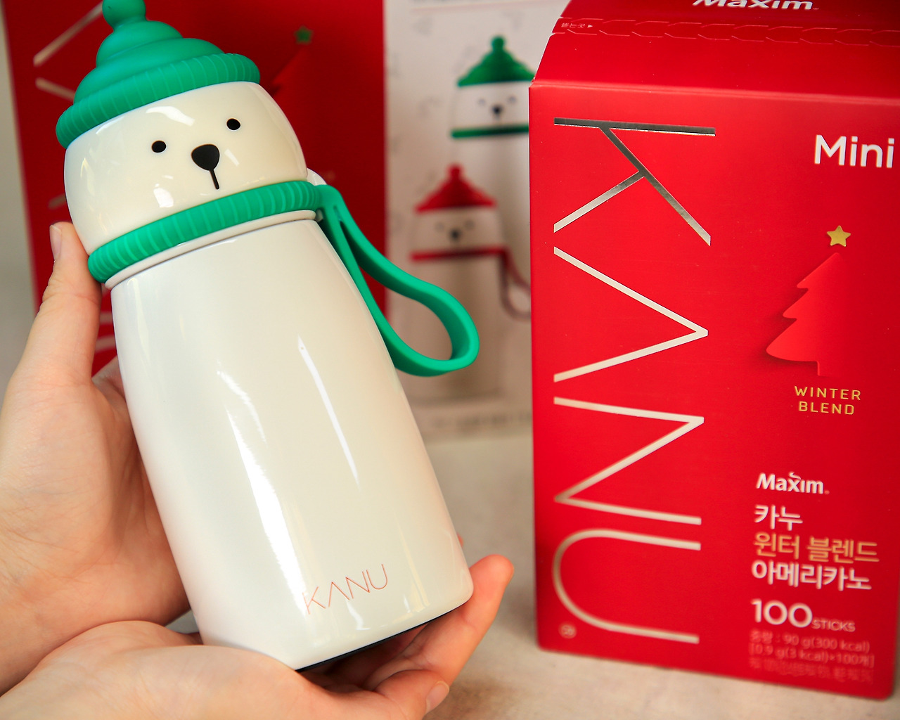 완벽한 계획의 끝은 자수(?)로 끝이 났다. 여자친구에게 사진과 함께 메시지를 보냈다. 카누를 이렇게 이렇게 많이 받았는데 다 포장해서 다른 사람들 선물로 줘버리려고 했다고 했다. 대신 하나 남은 카누 윈터 블렌드는 그녀에게 주겠다고 했다. "이건 귀여운 눈사람 텀블러도 있어."
