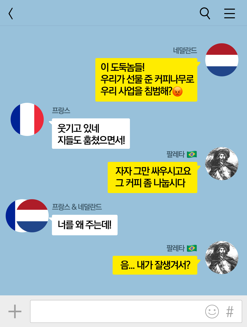 한 잔의 음료에도 지구를 도는 모험사가 담겨있다. 예멘에서만 비밀리에 길러지던 커피는 문익점들(?)의 활약으로 이제 손쉽게 얻을 수 있는 작물이 되었다.