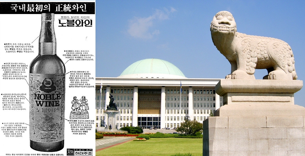 의도가 어떻게 되었건 국산와인은 20년 동안 무럭무럭 성장하게 된다. 1975년 여의도에 국회의사당이 만들어졌을 때 본청 건물 앞에 두 마리의 해태상이 놓이게 되었다. 해태상이 화재를 예방해준다는 속설 때문이었다. 문제는 예산이 부족하다는 것. 그래서 해태상을 만들어줄 회사를 찾았다... 가 아니라 찾을 필요도 없었다 이름부터 해태제과가 있잖아?