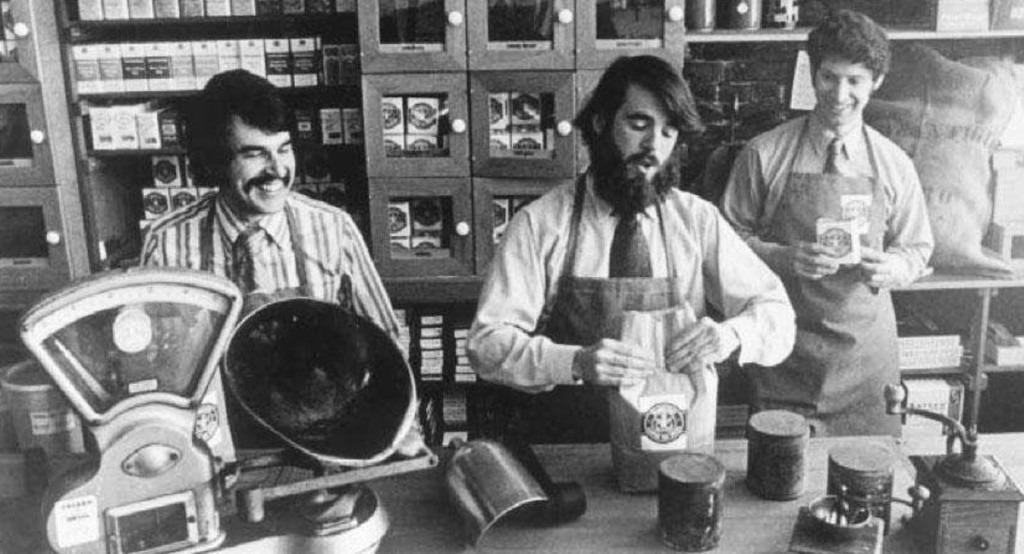 1971년, 미국 시애틀에 작은 커피 원두 매장이 열린다. 영어교사였던 제리 볼드윈(Gerald Jerry Baldwin), 역사교사인 지브 시글(Zev Siegl), 프리랜스 작가인 고든 바우커(Gordon Bowker)가 합심을 하여 설립한 가게였다. 당시 많이 쓰이던 강하고 씁쓸했던 '로부스타'원두 대신 부드러운 '아라비카'원두를 소개하기 위해 만든 커피 원두 판매 가게였다.