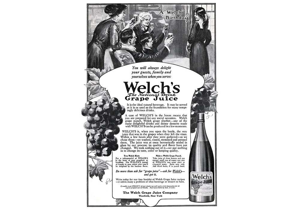 1893년 찰스 웰치는 웰치스 포도주스를 만국박람회에 선보인다. 발효되지 않은 와인이었을 때는 거들떠보지도 않았던 사람들은 포도주스라는 말에 관심을 보였다. 발효되지 않은 와인이 뭔가가 결여된 주류의 느낌이었다면, 처음 들어보는 포도주스는 건강하고 프리미엄의 분위기가 있었다.
