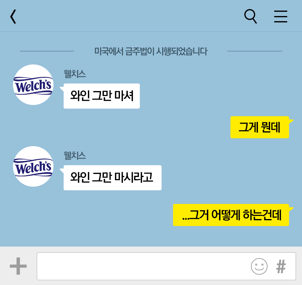 '알콜 대신에 음료를, 취하지 않는 즐거움'을 찾아 웰치스를 마시는 사람이 금주법 시대에 늘어났다. 웰치스를 만든 토마스 웰치의 바람이 뒤늦게 이뤄지는 순간이었다. 물론 금주법이 끝나고 와인을 마실 사람은 다시 돌아갔겠지만, 적어도 웰치스는 변하지 않을 것임을 모두가 알 수 있었다. 그래 그거면 된 거야.