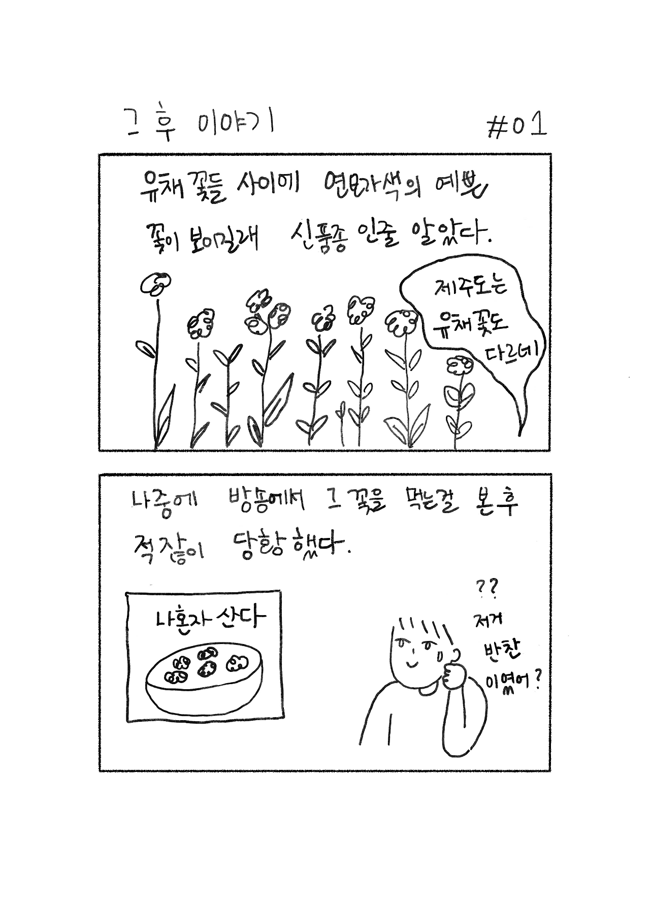 길가에는 바람에 흔들리는 4월의 유채꽃이 피어 있었고 웃으며 관광버스에서 내리는 어머님들, 즐거운 가족들 , 연인 그리고 자아를 찾아온 저마다의 사람이 있었다.