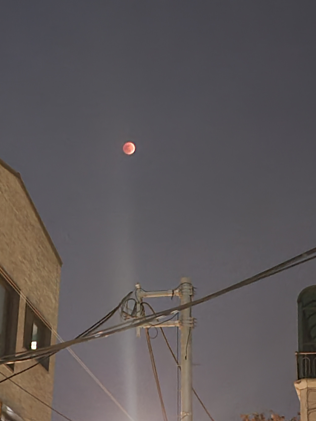 이번 월식이 이 지역에서 보름달과 겹친 사례가 오랜만이라는 설명도 들었습니다. 기온까지 떨어진 밤이어서인지, 붉은 달의 색은 평소보다 더 선명하게 느껴졌습니다. 주변 식당과 상점의 불빛이 있어 현실에 발을 붙이고 서 있는 기분이 들었습니다.