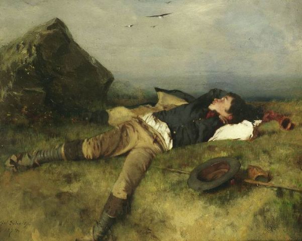 목동은 깊은 골짜기가 내려다보이는 높은 바위 위에 홀로 서 있습니다. 그는 자신의 노래가 저 아래 세상까지 닿기를 바라며 목소리를 높입니다. 이때 들려오는 '메아리'는 그의 유일한 대화 상대입니다.