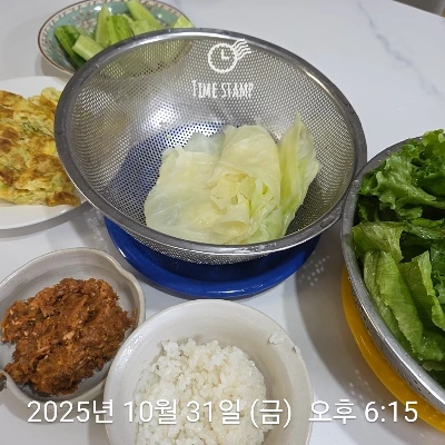 참치쌈장을 만들어서 양배추와 상추에 싸 먹었다. 진짜 너무 맛있었다.