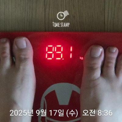 90kg 찍어 둔 사진이 없어 수요일 공복에 옷을 입고 사진을 찍어뒀다.(이틀만에 살이 좀 빠졌다 ㅋㅋ) 그래도 비포 검증 사진은 있어야 할 것 같아서. 이후로 체중계 사진을 찍진 않을 예정이다. D-DAY에 에프터 인증만 하는 걸로.