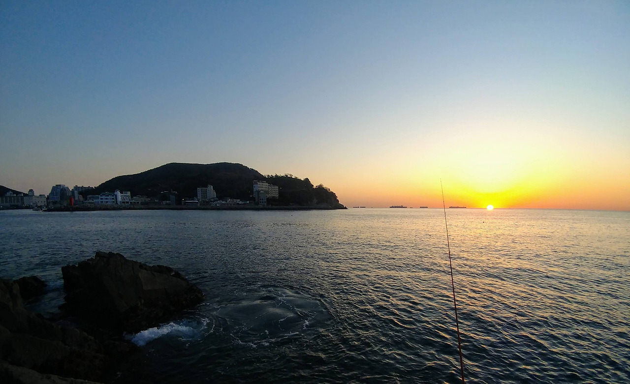 그늘진 산등성이 도시는 아직 잠에서 깨지 않았고 배 떠난 항구는 고요를 되찾았다. 고요한 파도따라 넘실대던 낚시 찌는 행방을 찾을 수 없는데 바다에 비친 햇살은 빨갛게 넓게 퍼졌다. 새벽 5시부터 부랴부랴 낚시 가방을 싸들고 나설때부터 확인한 아침 기온은 영상 5도였다. 손이 시릴까 염려했지만 다행히 낚시를 방해할 정도는 아니었고 아무도 없이 고요할 것이라던 예상은 항구를 떠나는 배들로 인해 잠시 소란했지만 처음 본 장관을 이루었다. 요란하던 파도와 쌀쌀하던 바람은 찬란한 해돋이로 인해 잠시 잊혀졌다.