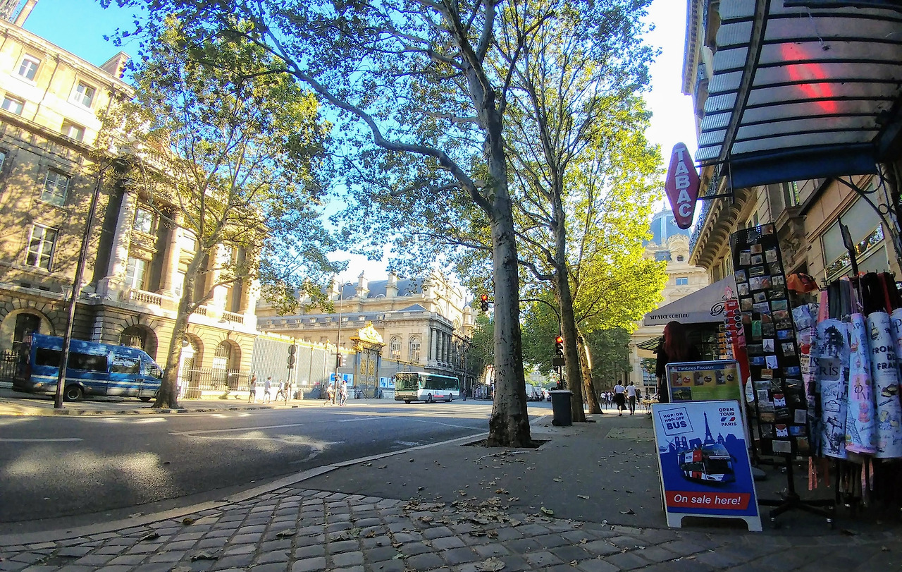 파리 1구, 시테 섬에 위치한 법원(Palais de justice) 정문. 생 샤뻴 성당과 마리 앙뜨와네뜨가 갇혔던 꽁시에르주리가 같이 있다.