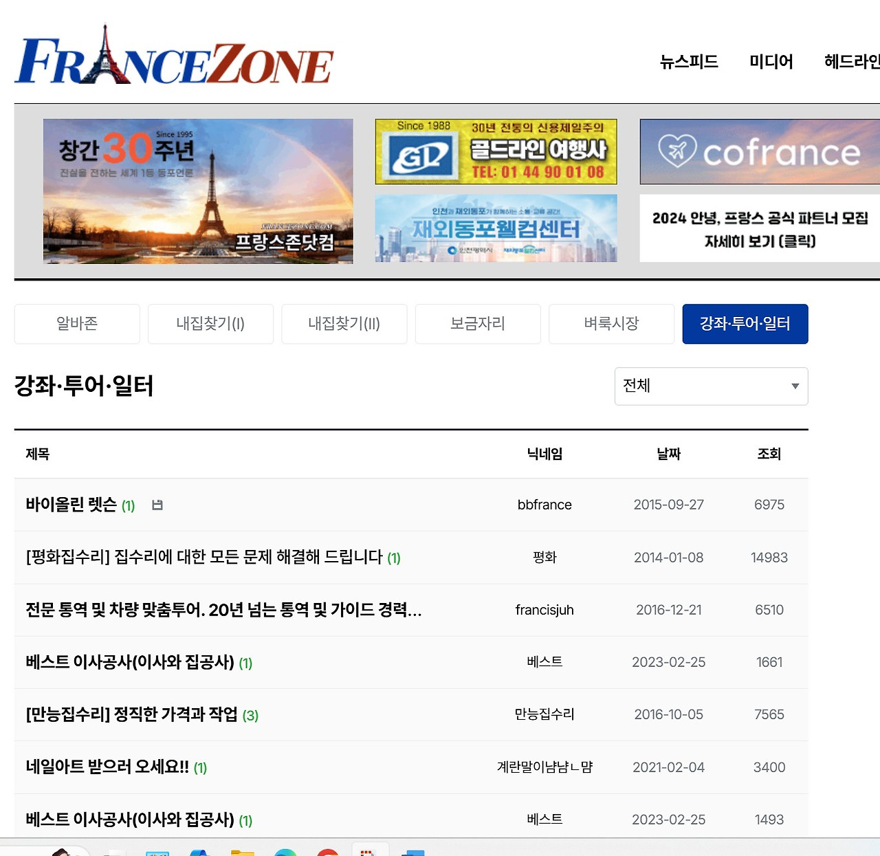 나는 집수리를 조선족에게 맡겼다. 이웃사촌 같이 서로 상부상조하면 좋을 것 같았고 프랑스인들의 터무니없는 수리 가격에 비해 저렴한 이유도 있었다. 프랑스에 살면 웬만한 집수리는 혼자 할 줄 알아야 했다. 그런 이유로 집수리를 직접 할 수 있는 자재들을 살 수 있는 대형 마트가 곳곳에 존재했으므로 스스로 웬만큼 집수리를 했다. 그러나 어느 날, 화장실과 욕실 확장을 위해 오랫동안 친했던 회장에게 집수리를 요청했다. 회장은 새로 온 친구라며 집수리를 책임지는 친구에게 위임했다. 회장으로부터 민박 일을 볼 아줌마도 소개받았던 터였다. 모든 일은 조선족 협회로부터 이뤄졌다는 것을 알 수 있었다. 1주일간 5천 유로에 자재는 직접 사는 것으로 협의를 보았다. 싸게 해준다며 사람 좋게 웃었다. 내겐 상부상조와 이웃간의 정이 더 중요했다. 집수리를 진짜 중국인들 네 댓을 진두진휘하며 이틀 만에 끝냈다. 하루 일당이 5만원 정도 됐다. 자재는 내가 산 것이니 아무리 좋게 따져도 이틀 공사에 4백을 챙긴 그들의 실력은 믿을만한 수준이 되지 못했다. 수정작업을 요청했더니 지방 출장을 다녀야 한다며 차일피일 미루다 나중엔 아주 감감무소식이었다. 그들은 계속 한인지 프랑스존을 통해 자신들의 업체를 홍보했다.