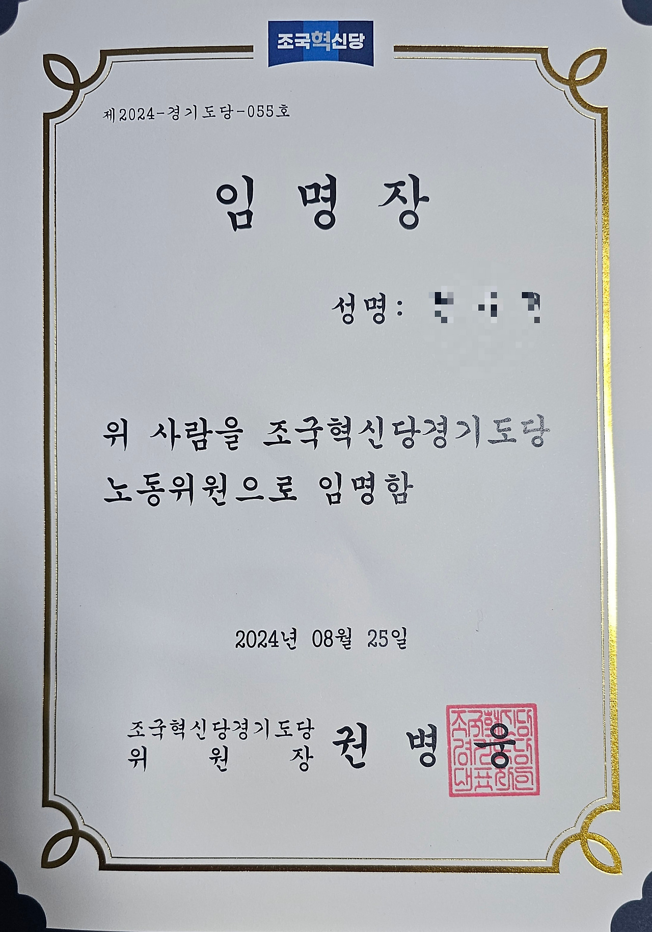 그러나 나는 곧 조국혁신당의 경기도당 노동위원회를 자발적으로 관두었다. 도당 위원장으로부터 위임받은 13인의 위원들 중에 한화 계열사 노조 출신 셋이 부위원장 선임을 두고 위원들의 동의를 거치지 않고 마음대로 임명했다고 단톡에 다른 대화가 이루어지지 못하게 위원장을 몰아붙였다. 만나서 얘기하고 지금은 첫 미팅에 대해 논의하자는 요구에도 막무가내로 몰아붙였다. 만나서 얘기하지 못할 이유가 없음에도 그 셋은 첫 만남 이전에 강퇴 당했다. 그들이 위원장이나 부위원장 자리를 차지하고 위원회를 장악하기 위한 의도로 보였다. 신장식 의원과 법안 마련을 위해 한화계열 노조위원장으로서 국회에 참석했고 압도적인 지지로 재선임 되었으므로 자신이 얼마나 대단한 사람들인지를 자랑 삼았다. 그들은 중앙 윤리위원회에 도당위원장, 노동위원장 등, 당직자들을 제소했다. 도당은 패소했고 모두 징계당했다. 나는 도당위원장이 위임한 위원이었으므로 탈당과 동시에 노조가 노조 한다며 혐오를 남기고 부질없다며 떠났다. 그리고 나는 조선소로 돌아왔다. 결혼과 함께.