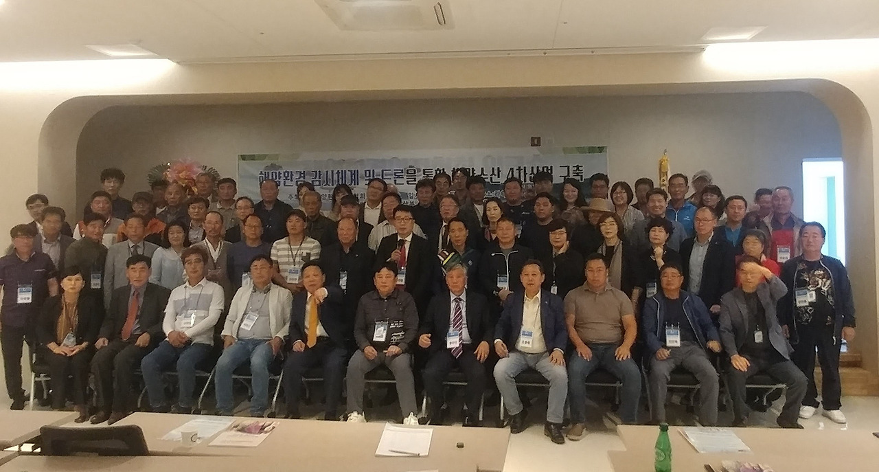 한국해양환경안전 협회 중앙회 단체 사진. 가운데 손짓을 하는 이가 김창완 협회장이다.