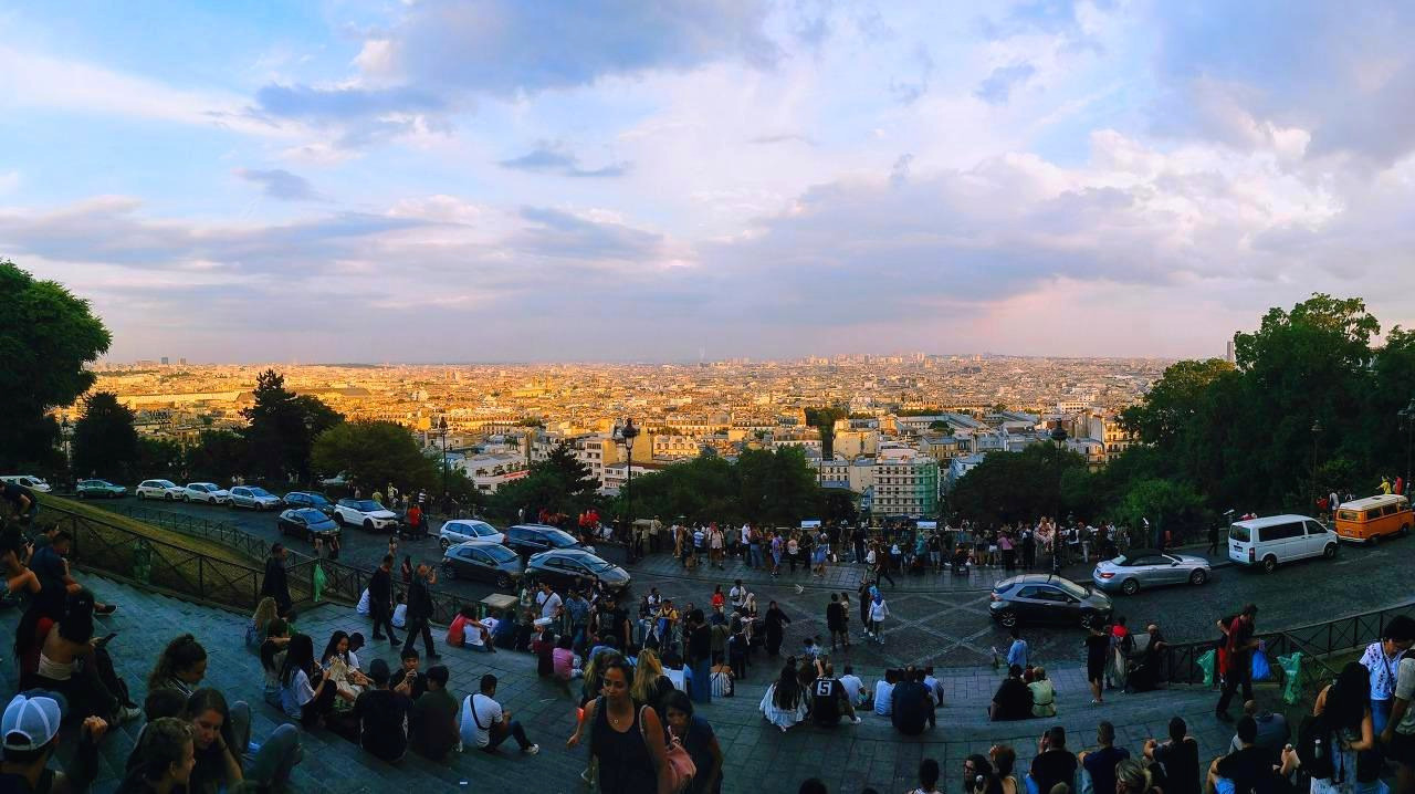 계단엔 마치 유명한 공연을 관람하러 온 사람들처럼 점점 사람들은 늘어나고 양 옆의 정원에도 하루 일과를 마치고 온 사람들이 이것저것 음식을 싸들고 와서 푼다. 꽤 경사가 심한 곳인데도 아랑곳 없이 들판 같은 파리의 지붕이 불 밝히는 야경을 즐기겠다는 여유는 한국과는 많이 다른 차원을 보여준다. 이곳엔 낯선 사람들이 쉽게 다가갈 수 있다. 거리감 없이! 반면에 한국에서는 다가서기 위해선 대단한 용기가 필요하다. 그렇게 두 문화의 차이점이 한국에 가면 거리감을 가지게 된다.