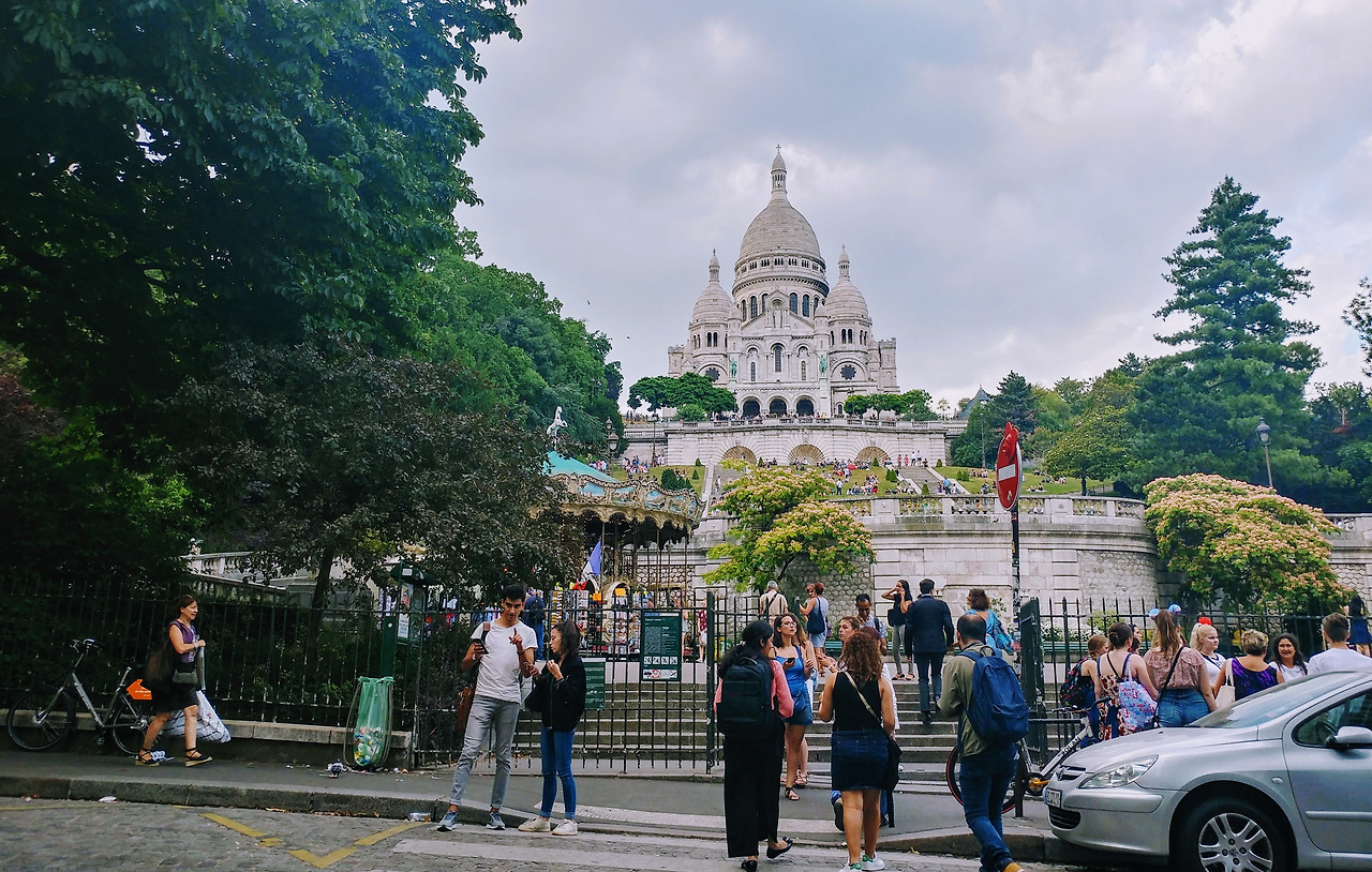 몽마르뜨는 가난하고 불운한 화가들, 작가들이 값싼 월세를 찾아 모여들었던 곳이다. 밤이되면 빨간 불을 밝히고 돌아가는 물랑루즈의 풍차, 주변의 홍등가는 이미 수차레 영화에 등장하기도 했으니 그 유명세야 따로 말할 필요도 없겠으나, 주변에 위치한 회사에선 양복을 입고 와인과 맥주를 사와 경사가 진 잔디 위에 앉아 만찬을 즐기는 회사 사람들과 여행객들이 섞여 몽마르뜨는 언제나 축제 분위기다. 그 파티와 더불어 사람들의 여유로운 흥겨움은 주변 사람들에게 파리 여행의 참맛을 느끼게 한다.