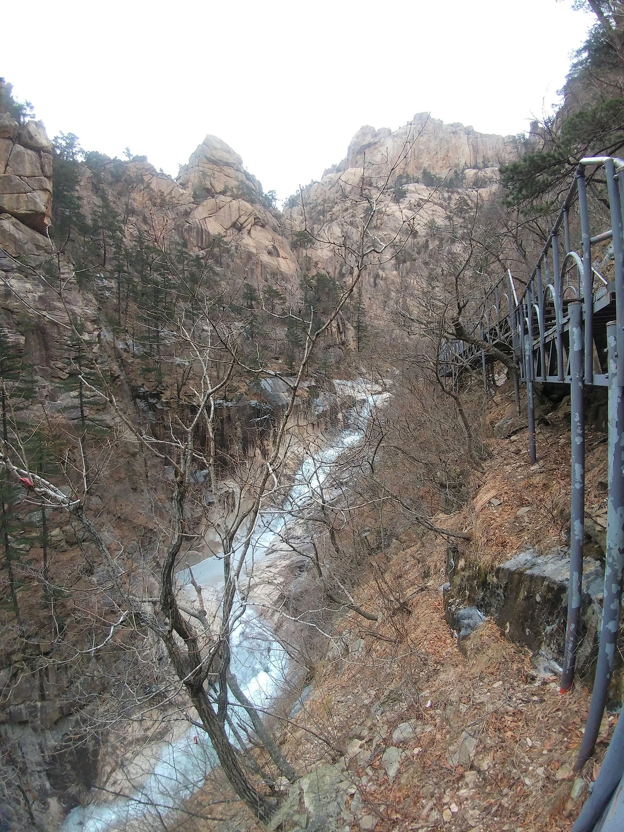 조금 올라가자 만나는 비선대는 터가 남아 있지 않았다. 인터넷에서 파악한 정보에는 2017년에 철거되었다는 소식이 사실임을 알 수 있었다. 비선대의 비경을 자랑하는 수많은 글들을 보았으나 나는 아무런 감흥이 생기지 않았다. 작고 소담스러운 계곡과 기암절벽이 얕고 단조로웠기 때문이었다. 어쩌면 몽블랑을 하이킹으로 오르는 ‘빙하의 바다(Mer de Glace)’를 기차로 타고 오르는 ‘몽땅베르(Montenvers)에서 보는 절경의 100배 축소판이라는 생각이 들었다.