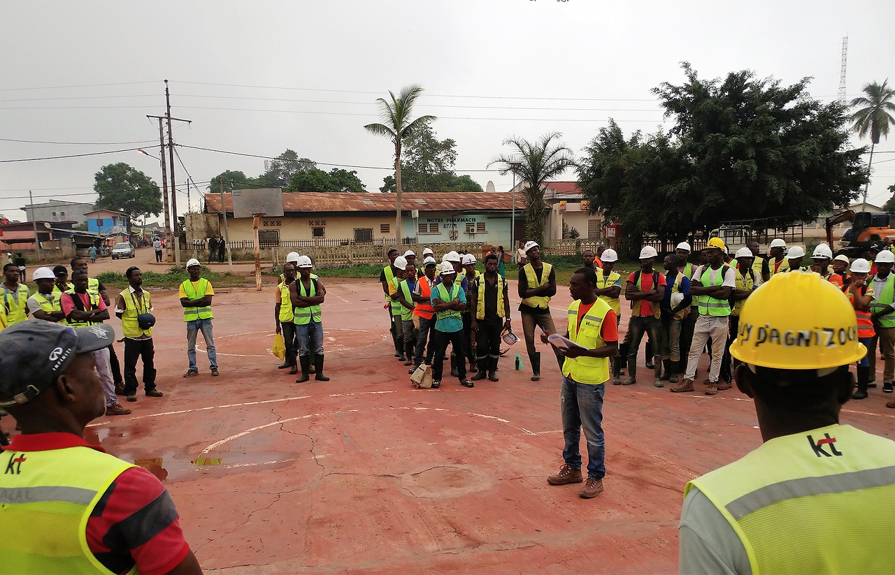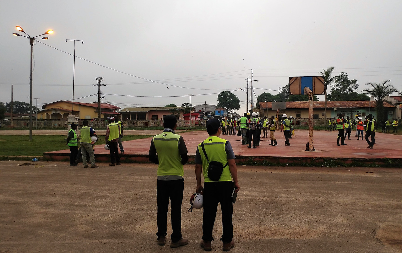 인부들이 일제히 인사를 했다. 늦는 사람도 모두 자리에 참석했다. 팀 별로 모두 안전 관리자인 현지인 파브리스의 말을 경청하고 있었다. 파브리스의 말은 뒤편에서 알아들을 수 없을 정도로 작았다. 물을 많이 마시고 햇빛에 주의하라는 말을 하고 있었다.