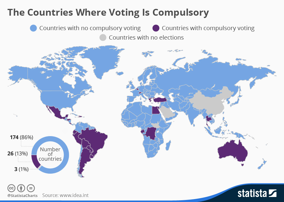 의무투표제는 말 그대로 투표를 시민의 의무로 설정하는 제도다. 다시 말하자면 의무투표제 하에서 시민권을 지닌 모든 사람은 투표에 참여해야 하고 참여하지 않을 경우 처벌을 받는다.