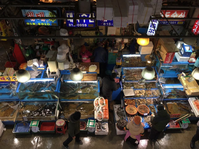 [매일 매일 바뀐 가격을 제시하는 수산물 시장의 한 장면 /사진. 김형래]