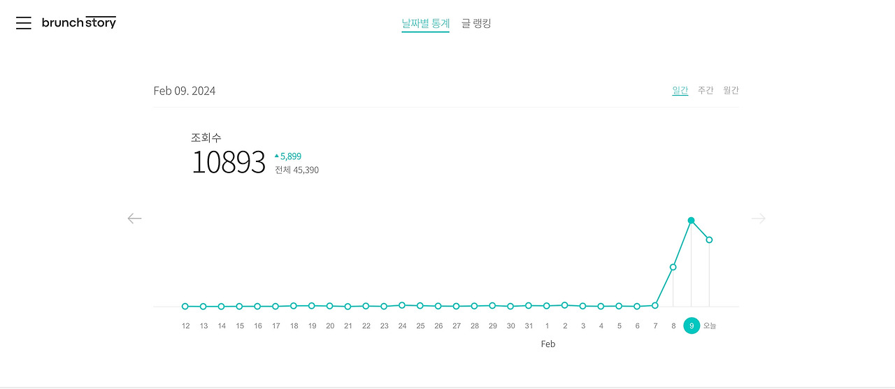 이틀 전 쓴 글(https://brunch.co.kr/@mastermind/217)의 조회수가 쭉쭉 올라가더니 거의 5000에 달하는 것이 아닌가! 내심 기분이 좋았지만, 여기저기서 알고리듬님의 간택을 받고 몇만씩 올라간 사례들을 너무 많이 봐서인지 그러려니 했다. 그렇게 끝나는 줄 알았던 운빨은 다음 날 나를 조금 동요케 했다.