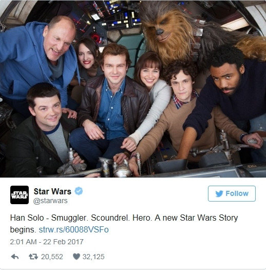 스타워즈의 두 번째 스핀오프 시리즈로 이번에는 한 솔로의 과거사를 다룬 작품이다. 은하 제국이 건설된 지 10년이 지난 시점으로, 한은 은하계 최고의 파일럿을 꿈꾸는 20대 청년으로, 코렐리안에서 범죄조직의 똘마니로 있다가 애인 키라와 함께 탈출하고 그 과정에서 키라와 헤어진 후 제국군에 입대했다가 거기서 수상한 3인조를 만나 위험천만한 모험을 즐기게 된다는 내용이다. 이 영화에서 한 솔로가 평생의 동반자인 츄바카와 만나게 되는 계기, 특유의 능글맞으면서도 위기 때 빛을 발하는(?) 말재주, 밀레니엄 팔콘을 얻는 과정들이 자세하게 묘사된다.