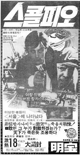1970년대 강대국들 사이에서의 냉전상황의 어두운면을 적나라하게 보여준 이 작품은 언뜻 지루한 것 같으면서도 꽤 긴박하게 흘러간다. 제목 <<스콜피오>>는 극중 알랭 들롱의 별명으로 국가를 위한다는 명목하에 오늘 혹은 내일 죽을지도 모르는 정말 1분1초도 불안과 공포속에서 허우적 댈 수 밖에 없는 비참한 삶을 살아야만 하는 각국 스파이들이지만 어떻게든 정상적으로 인간답게 살려고 발악하는 첩보원들의 애환이 영화를 보는 이로 하여금 가슴을 뭉클하게 하기도 한다. 물론 이는 영화와 영화가 개봉했던 당시의 1973년이라는 시대적 배경이라는 측면도 있지만(물론 당시 우리나라는 유신정권으로 훨씬 더 암울하긴 했다.)1963년에 개봉한 <<레오파드>>이후 10년만에 함께 공연한 버트 랭카스터와 알랭 들롱 이 두 사람의 명연기도 큰 몫을 한 것도 결코 간과 할 수 없다. 버트 랭카스터야 1953작 <<지상에서 영원까지>>, 1960년작 <<엘머 캔트리>>로 유명한 초 베테랑 배우이고 <<엘머 캔트리>>로는 골든 글로브와 아카데미 남우주연상까지 수상한 명실상부 헐리우드 최고의 배우니 더 말할 필요 없는 최고의 연기파배우이다. 알랭 들롱 역시 58년작 <<사랑은 오직 한 길>>을 시작으로 60년작 <<태양은 가득히>>, 70년대 초의<<암흑가의 세 사람>>, <<암흑가의 두 사람>>, 볼사리노 시리즈를 통해 50년대 후반부터 70년대 초반까지 최전성기를 구가하고 있던 꽃미남스타이다. 물론 연기력도 외모만큼 빼어났다. 이미 한 차례 손발을 맞춰 본 적이 있는 두 명배우들이 함께 스토리를 이끌어 나가니 영화 속 주인공들이 느끼는 희노애락, 스토리의 긴박감을 두 배 혹은 그 이상으로 느낄 수 있는 것이다.