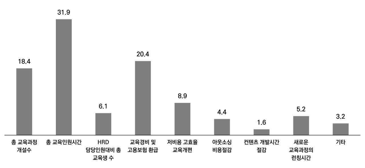- 교육비용절감 금액/비율 : 작년 대비 또는 연초 목표대비 교육비용을 절감한 금액/비율