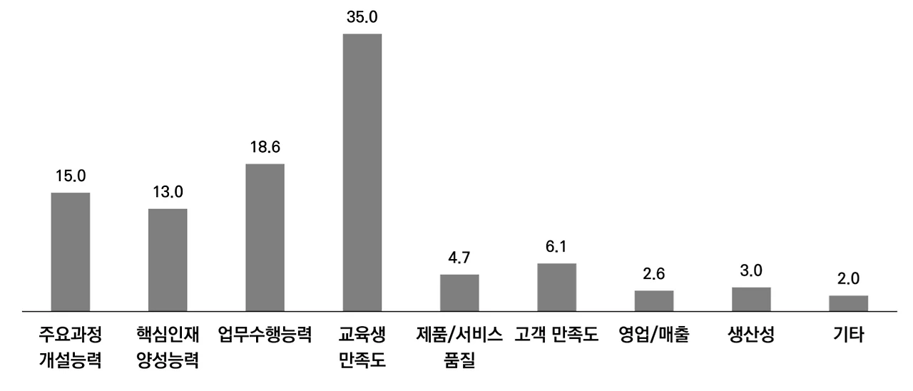 - 교육체계 구축 기간 및 완성도 : 완성도의 경우 상사평가나 고객평가를 통해 이루어진다.