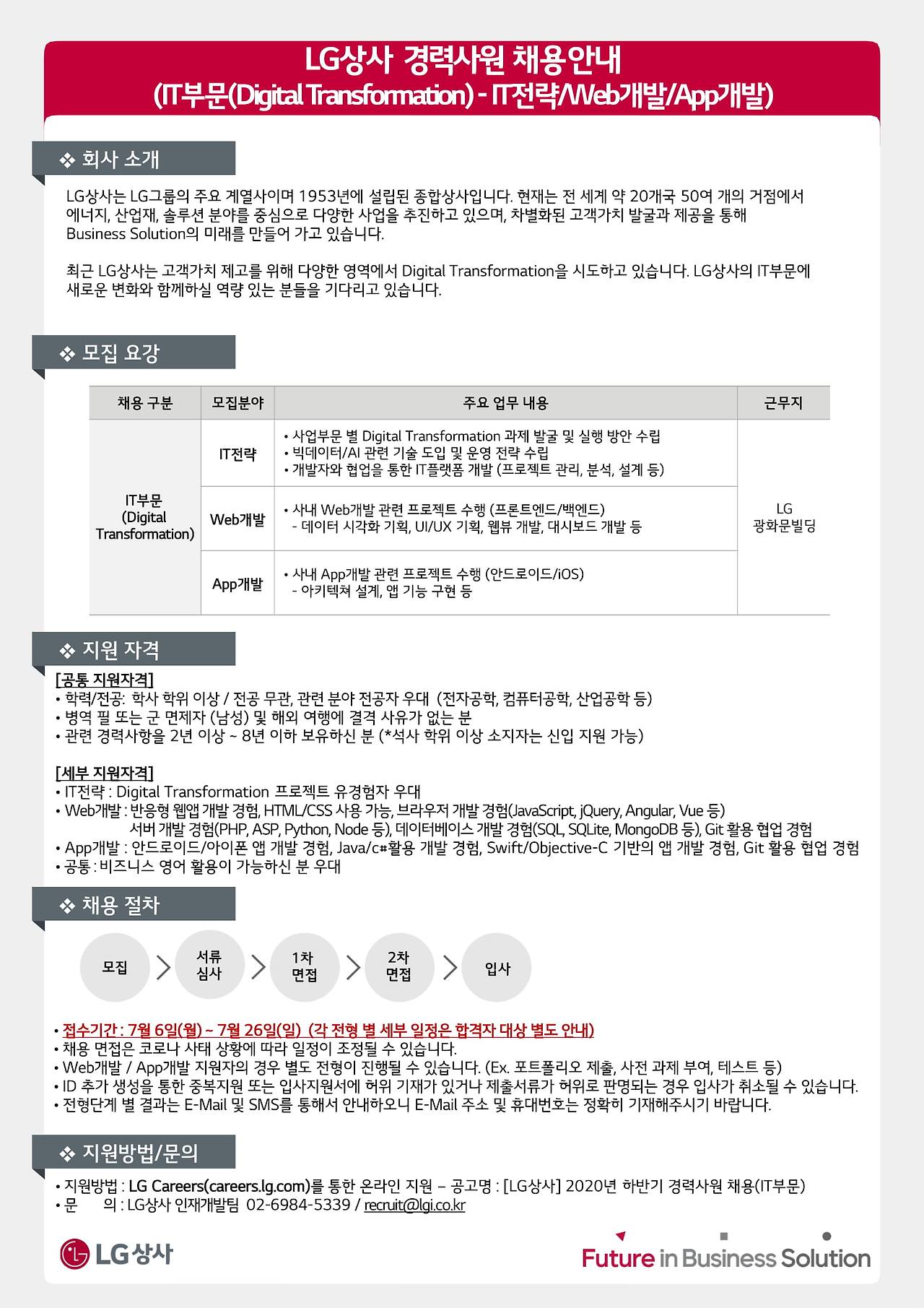 - IT전략 : Digital Transformation 프로젝트 유경험자 우대