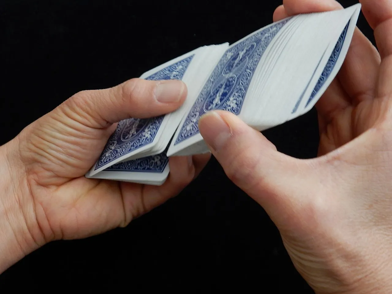 OVERHAND SHUFFLE 이라는 방법으로 카드를 섞는 게 익숙합니다.