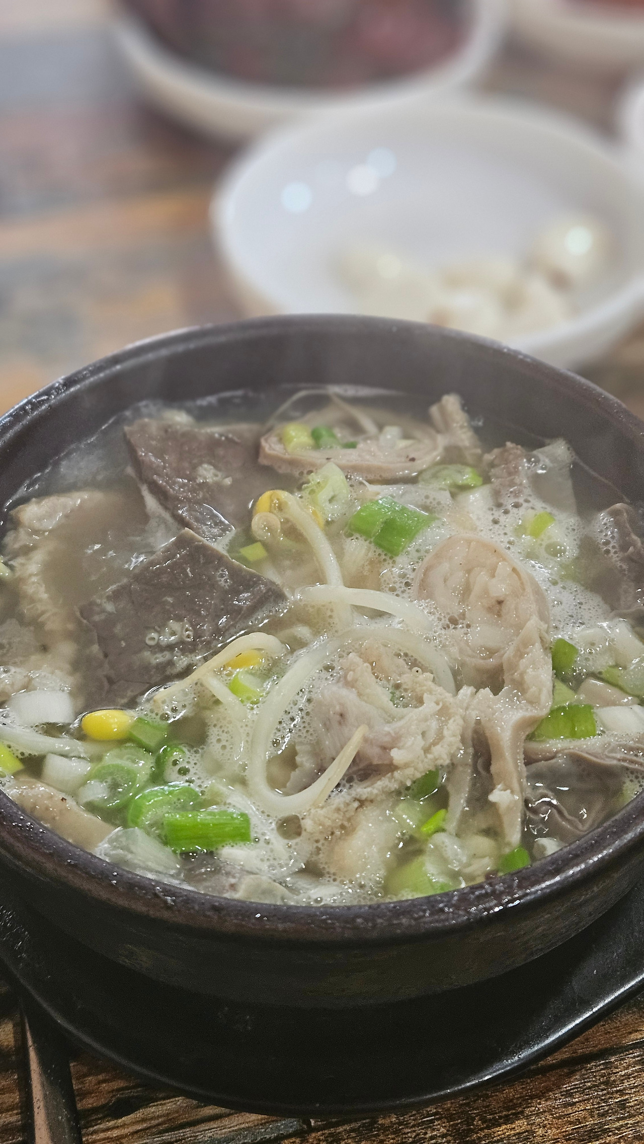 쪼로로 차에 올라 첫 번째 목적지인 한 우 소내장탕을 파는 원조목화식당으로 향했다. 만원이면 곱창이니 대창이니 선지니 하는 것들이 잔뜩 들어간 맑은 국물의 내장탕을 맛볼 수 있다니, 새삼 시골의 물가에 감사하게 된다. 어느 나라, 어느 도시에 가서도 현지 먹거리로 배를 불릴 수 있는 비위 좋은 나는 친구의 고기까지 옮겨 담아 배불리 한 그릇을 비웠다. 까탈스러운 서울내기들은 앞에 부부식당에 갈걸 그랬다며, 결국 몇 술 못 떠올리고 포기한다.