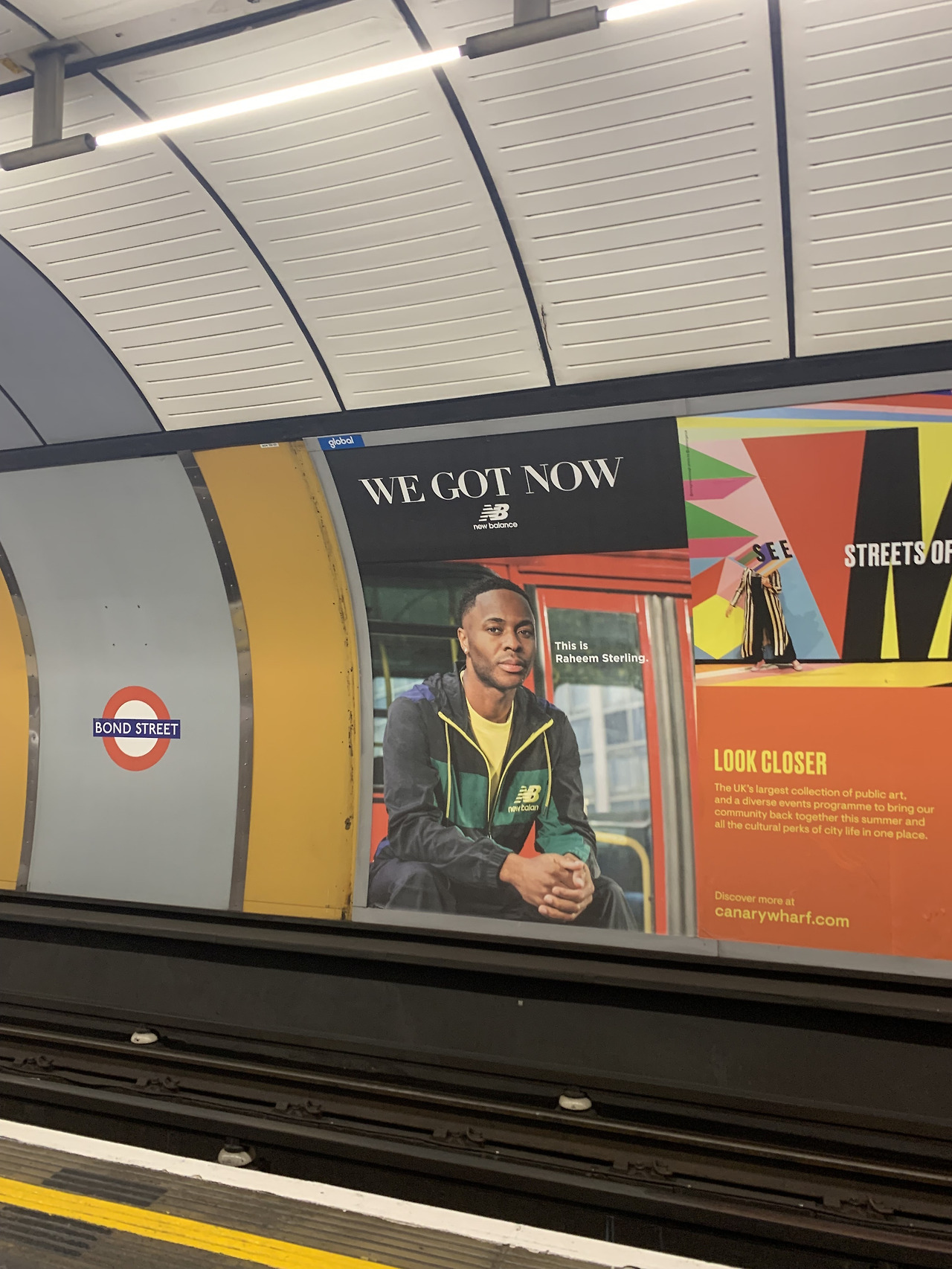 지하철 역에는 영국을 대표하는 축구 선수가 모델인 옥외 광고가 흔하고,