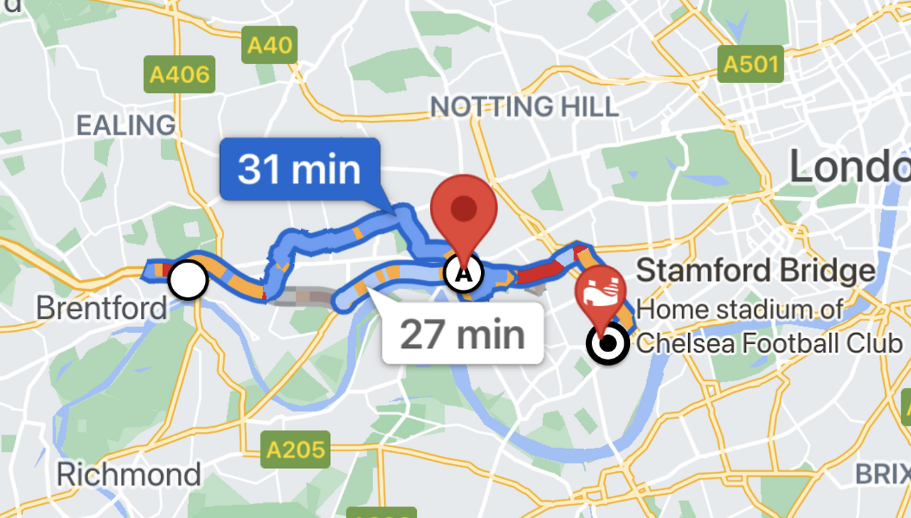 우측에는 첼시 FC의 스탬포드브릿지을 두고 자리했더랬다.