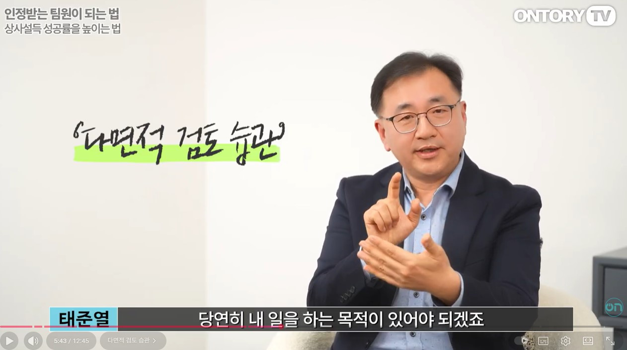 오늘(26일) 온토리 tv에 제 영상 2탄이 업로드되었습니다. 주제는 <일 잘하는 팀원의 상사 설득 방법>입니다.