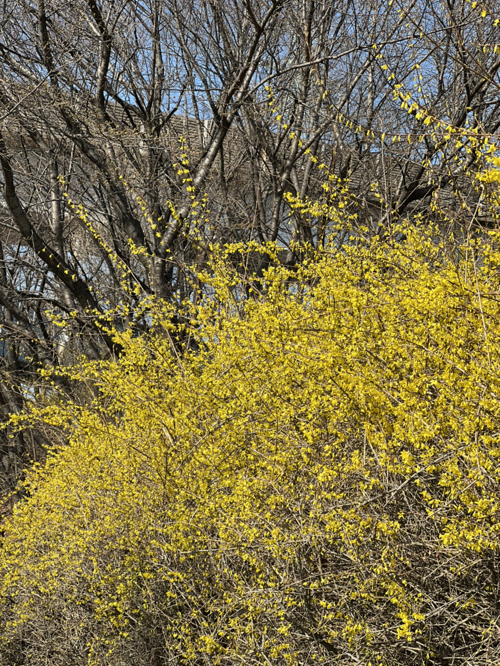 노란 개나리는 멀리서도 사람의 눈길을 잡아 끈다. 길가에 핀 개나리꽃을 보면서 걷는 나의 걸음걸이를 누군가 본다면 들떠있다고 짐작할 수 있다. 개나리가 꽃을 피웠으니 다른 꽃들도 앞다퉈 피기 시작하겠다. 꽃들의 시샘은 인간들의 질투보다 치열하다. 개나리꽃을 시샘하여 하얀 벚꽃을 피우기 시작하는 벚꽃나무도 보인다. 분홍빛 벚꽃은 가지마다 꽃망울이 맺혀있다. 맑은 태양빛을 며칠만 받으면 벚꽃도 중랑천에서 볼 수 있으리라.